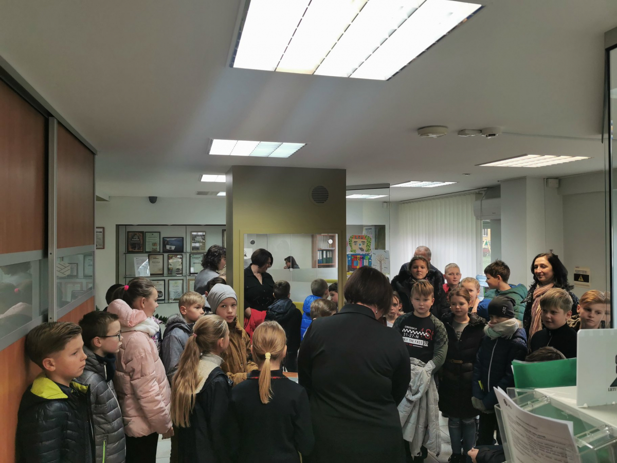 Rudenišką lapkričio 6 – osios rytą, Tauragės kredito unija sulaukė daug svečių. Tiek daug, kad tiek žmogučių unijoje vienu metu dar nėra buvę. Uniją aplankė M. Mažvydo progimnazijos 4 B klasės mokiniai. Kadangi mokykloje vyksta karjeros diena „Šok į tėvų klumpes“, apsilankę mokinukai domėjosi kokias profesijas ir įgūdžius reikia turėti norint dirbti kredito unijoje. Vaikai klausinėjo kokią veiklą vykdo kredito unijos įstaiga bei buvo žiūrėti filmukai apie skolinimąsi, taupymą ir eurą. Aktyviausi vaikai buvo apdovanoti simboliniais prizais.