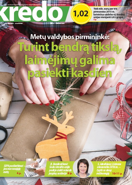 Kviečiame susipažinti su šventiniu "Kredo" kredito unijų narių žurnalu! Čia rasite tiek kalėdinių receptų, tiek įkvepiančių linkėjimų, tiek smagių sėkmės istorijų, tiek S. Jakeliūno 2016 metų prognozes!